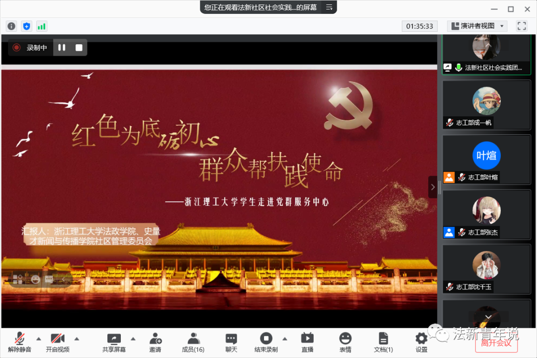 从展示过程中大家都能看出每一个实践项目都是脚踏实地得到的结果,有实实在在的内容支撑。具体来说,每个社会实践团队对实践主题把握都较为准确,基本上都是结合文件通知里的一些热点主题。其中通过展示可以看到大部分团队都集中在学党史学红色文化方面,在数字经济和共同富裕这两方面还缺少探究。但总体来说,集中于学党史学红色文化方面,只要再仔细整合,实践也会变得更加出彩。