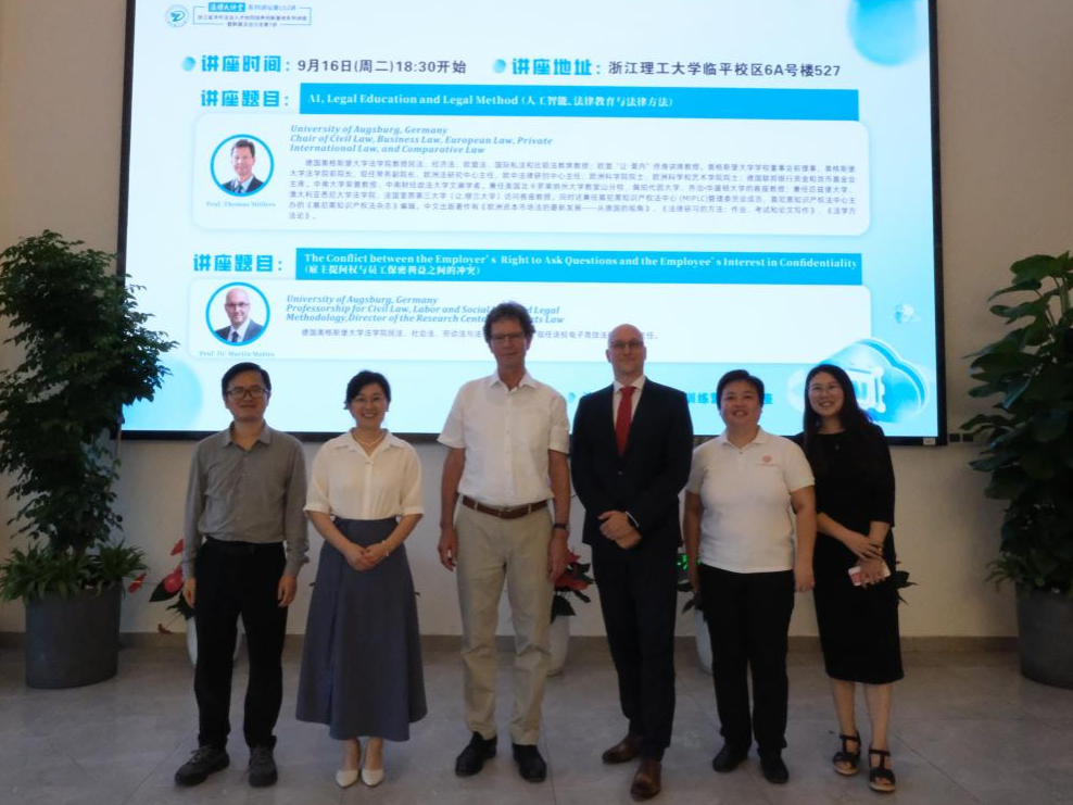 2025年9月16日,我院法律大讲堂系列讲坛第152讲、浙江省涉外法治人才协同培养创新基地系列讲座暨数据法治沙龙第7讲成功举办。德国奥格斯堡大学法学院Thomas Móllers教授和Martin Maties教授为我院师生作讲座。
