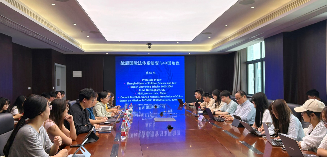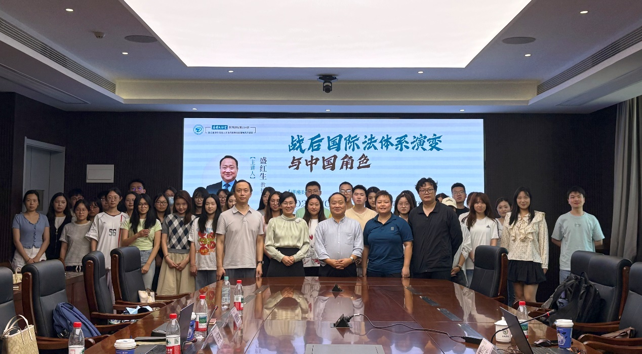 2025年10月15日,法学与人文学院在临平校区6A527会议室隆重举行省级涉外法治人才协同培养创新基地、涉外法治创新人才训练营系列讲座暨“法律大讲堂”第154讲。本次讲座特邀上海政法学院教授、博士生导师、“钱江学者”特聘教授盛红生教授主讲,讲座题目为“战后国际法体系演变与中国角色”。学院李子瑾副院长(主持工作)、郑旭江副教授、杨帆老师以及涉外法治创新人才训练营同学和关注涉外法治的师生40余人参加了此次讲座,与会师生与主讲嘉宾进行了深入交流。本次讲座由我院学术副院长姜慧芹副教授主持。
