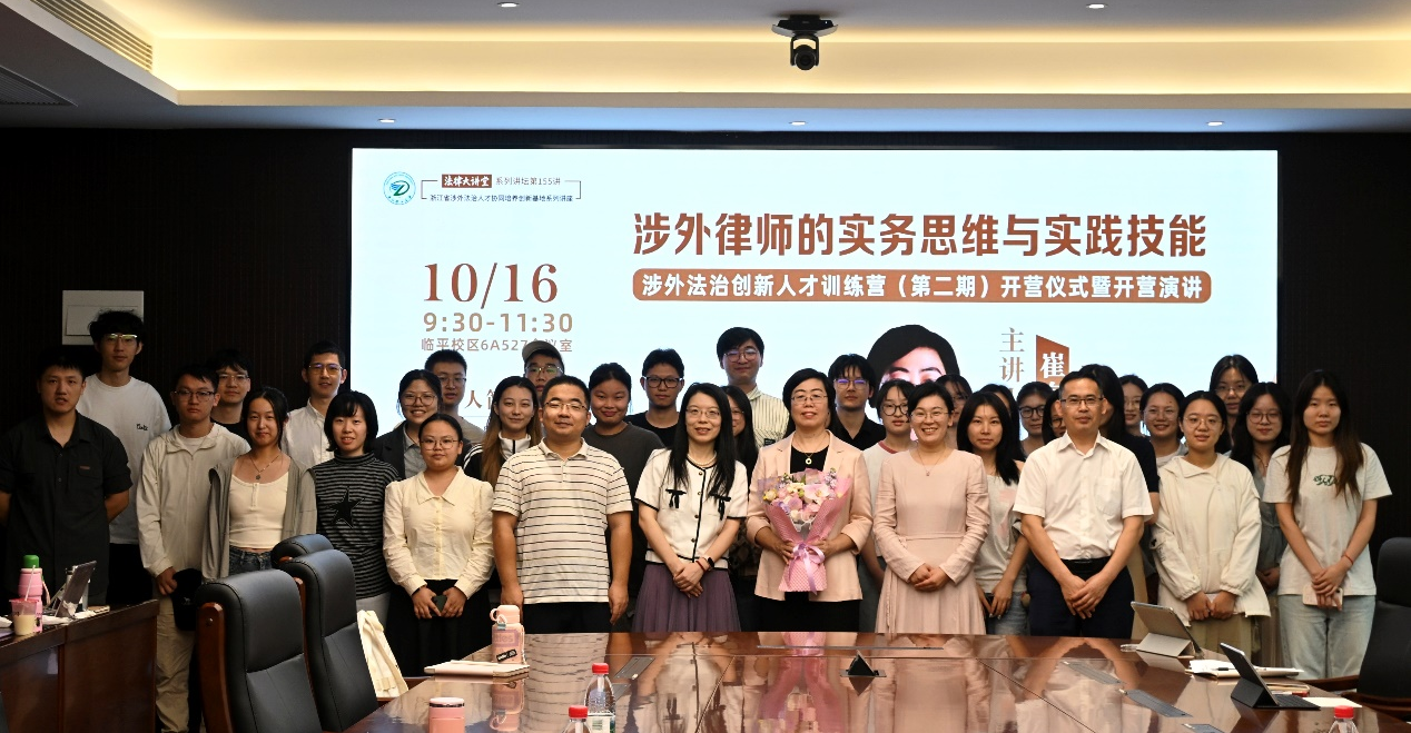 2025年10月16日,浙江理工大学涉外法治创新人才训练营(以下简称“训练营”)第二期开营仪式暨开营演讲在浙江理工大学临平校区6A527成功举办。本训练营以浙江理工大学省级涉外法治人才协同培养创新基地为依托,以涉外法治创新人才培养为主要目标,旨在增强我校本科生和研究生在涉外法治上的学术能力和实务技能,培养具备法学专业素养与国际视野的高素质涉外法治人才。