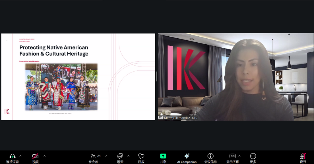 美国凯拓国际律师事务所美洲原住民事务与诉讼部律师Marthy Hernandez深入分析美国原住民文化在现代时尚产业中面临的结构性困境。她指出,原住民图案、纹样与手工艺因其独特文化意义而频遭品牌商业挪用,但现行法律框架对原住民文化元素的保护远不足以避免剥削与误用。她结合 Navajo Nation v. Urban Outfitters 著名案件,说明原住民部落在主张商标权、集体权益及文化自主性时所面临的法律挑战。她进一步介绍多种由社区主导的保护路径,包括推动部落集体商标、加强文化认证体系、建立原住民参与的合作模式等,以实现真正的“原住民主导创作”,避免文化价值在商业化进程中被削弱。