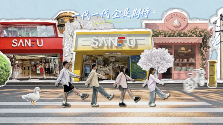 本次创意围绕“一袋”这一核心概念展开,原创主题曲《一袋一代》作为贯穿始终的灵魂线索,在跃动的节奏中释放Z世代的鲜活能量,传递他们多元而鲜明的态度。视频融合卡通拼贴、定格动画与MG动画九宫格运镜等创新形式,从潮流穿搭到精致妆容,以富有视觉冲击力的画面语言,彰显三福作为“万能之袋”如何一站式满足Z世代的多样需求,承载他们每一刻的精彩生活。“袋中装世界,代代有真我”是我们传递的理念,亦诚邀每一位Z世代,共同书写属于你们的“袋”言人故事。