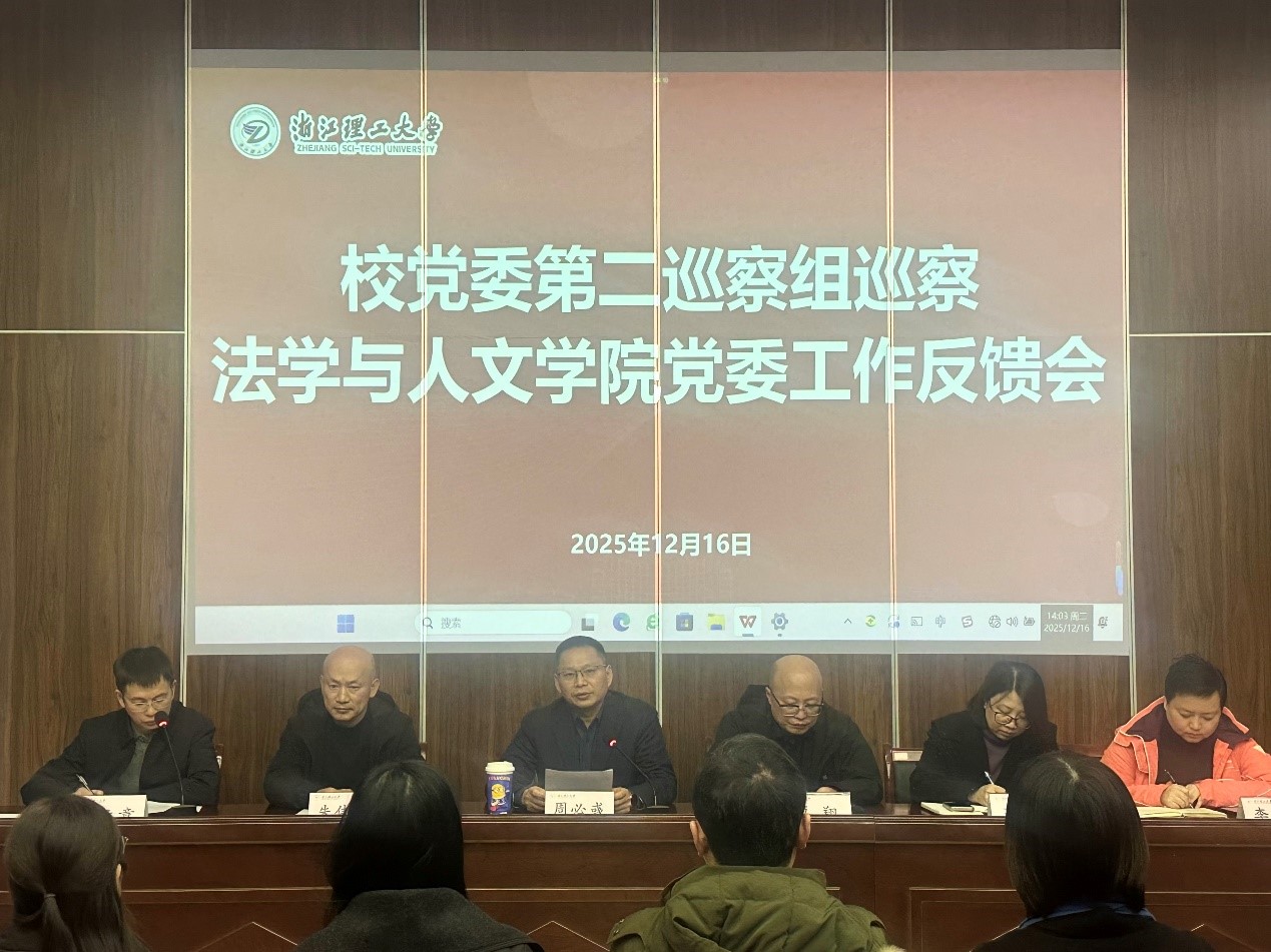 12月16日下午,校党委第二巡察组巡察法学与人文学院党委情况反馈会在临平校区6A楼107室召开。校党委委员、副校长周必彧出席会议。