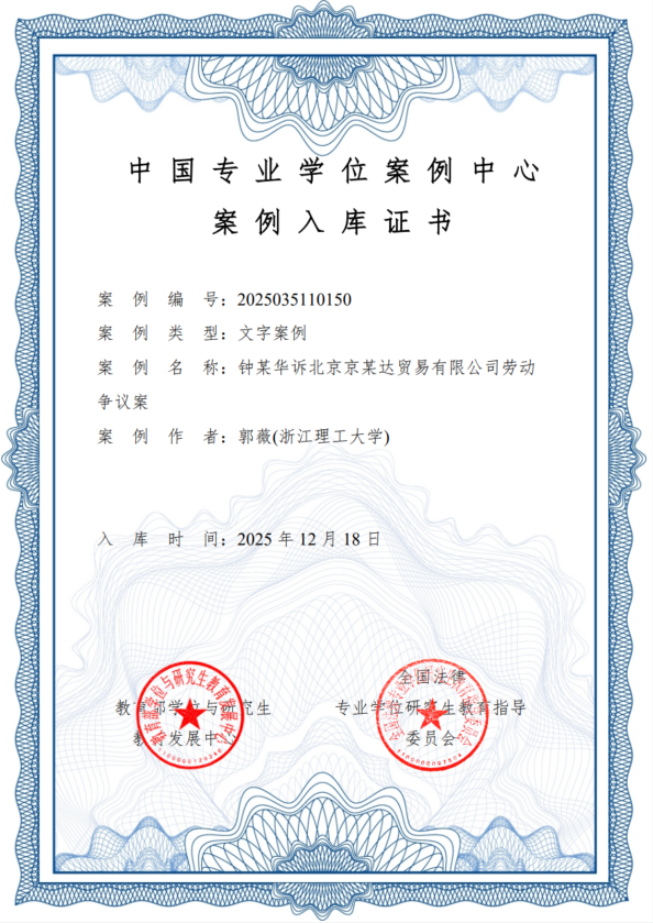 3.郭薇独立完成的《钟某华诉北京京某达贸易有限公司劳动争议案》。