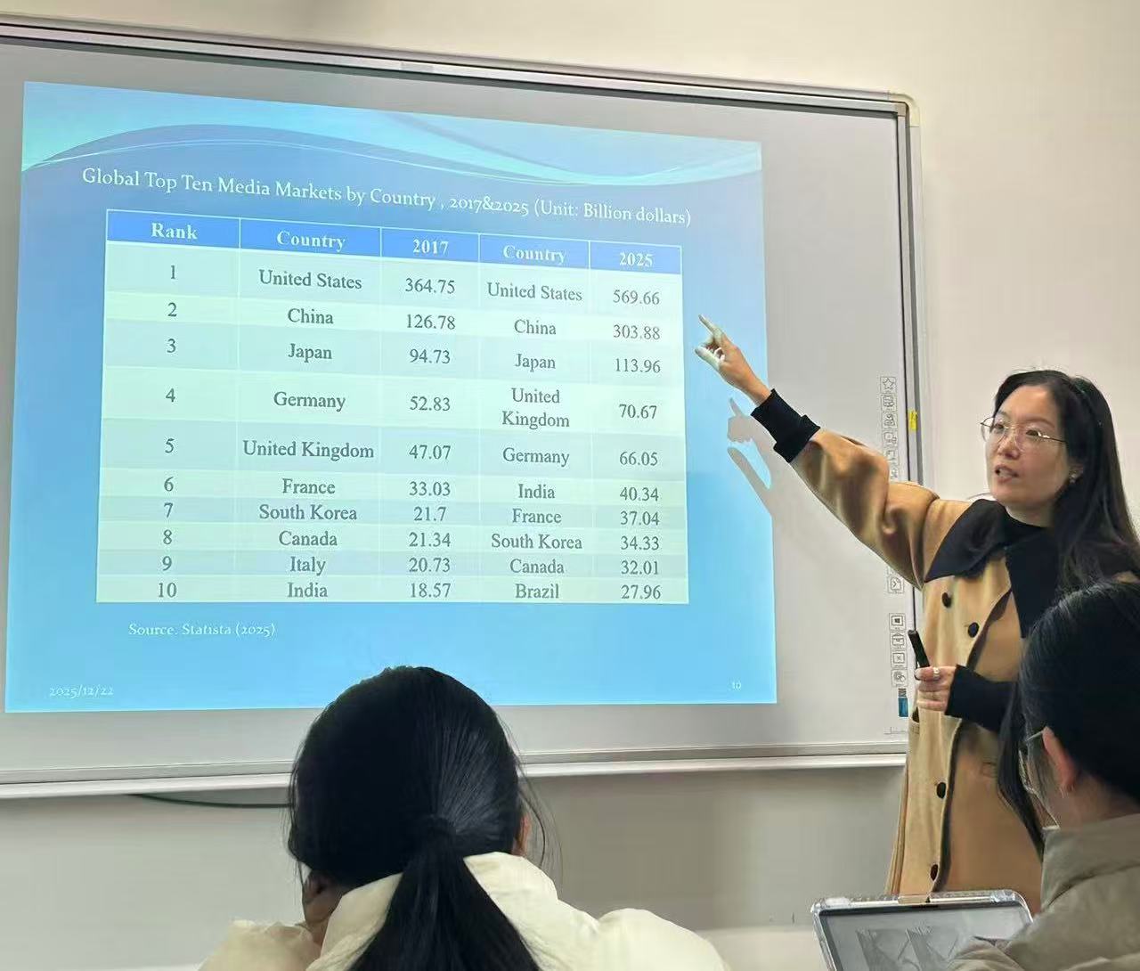 讲座中,章宏结合丰富案例展开论述,首先系统梳理了文化生产全球权力结构的变迁脉络,继而深入解析媒介融合背景下文化生产的平台化转型逻辑,最后聚焦微短剧等新兴业态,细致剖析算法与AI在文化生产中的实践应用。针对微短剧文化出海现状,她进一步指出,当前中国微短剧产业尚处于发展初期,核心导向聚焦流量与经济效益,后续需重点探索内容深度提升与文化价值彰显的发展路径。